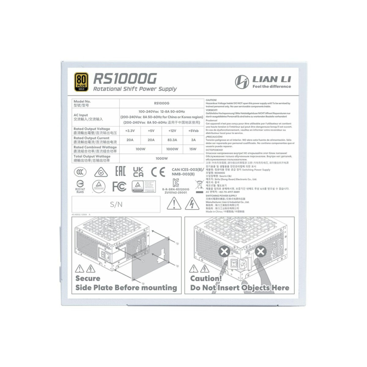 Η παγκόσμια καινοτομία της Lian Li επιτρέπει στην υποδοχή ρεύματος να περιστρέφεται κατά 90 μοίρες. Αυτό επιτρέπει την τοποθέτηση του τροφοδοτικού τόσο σε οριζόντια όσο και σε κάθετη διάταξη, διευκολύνοντας την πρόσβαση σε στενά κουτιά (cases).