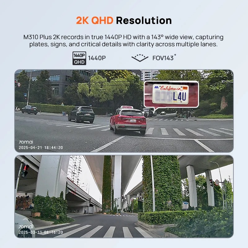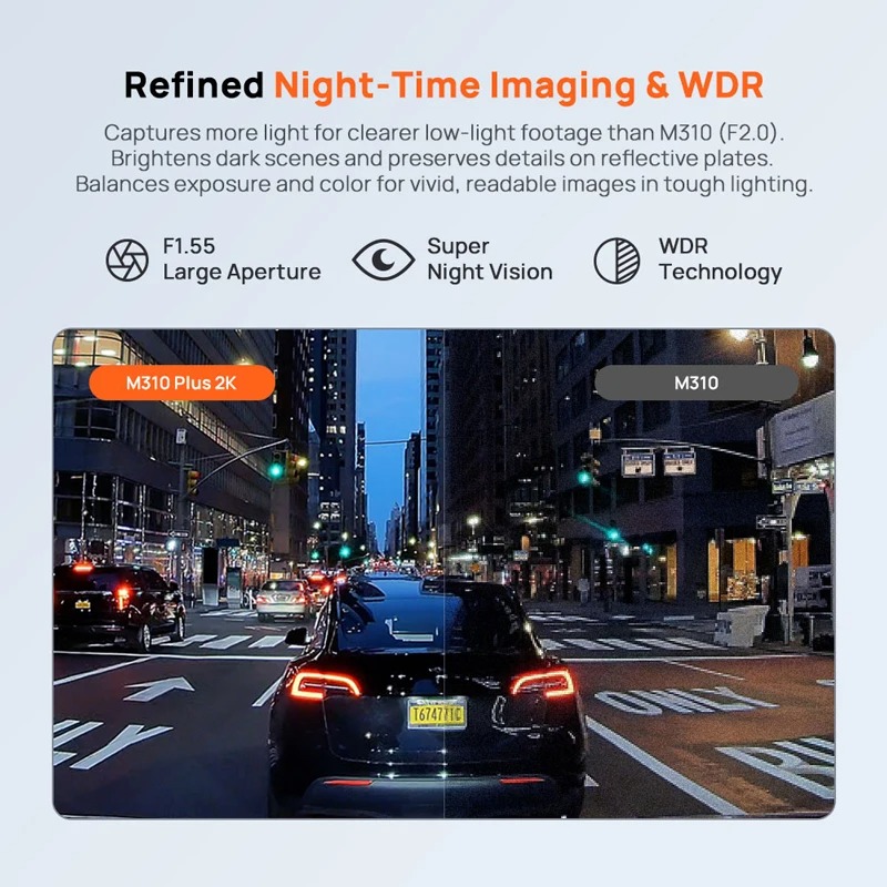 Με ανάλυση 1.5 φορά υψηλότερη από το standard 1080p, η M310 καταγράφει με κρυστάλλινη ακρίβεια πινακίδες κυκλοφορίας και οδικές σημάνσεις, παρέχοντας αδιαμφισβήτητα αποδεικτικά στοιχεία σε περίπτωση συμβάντος.