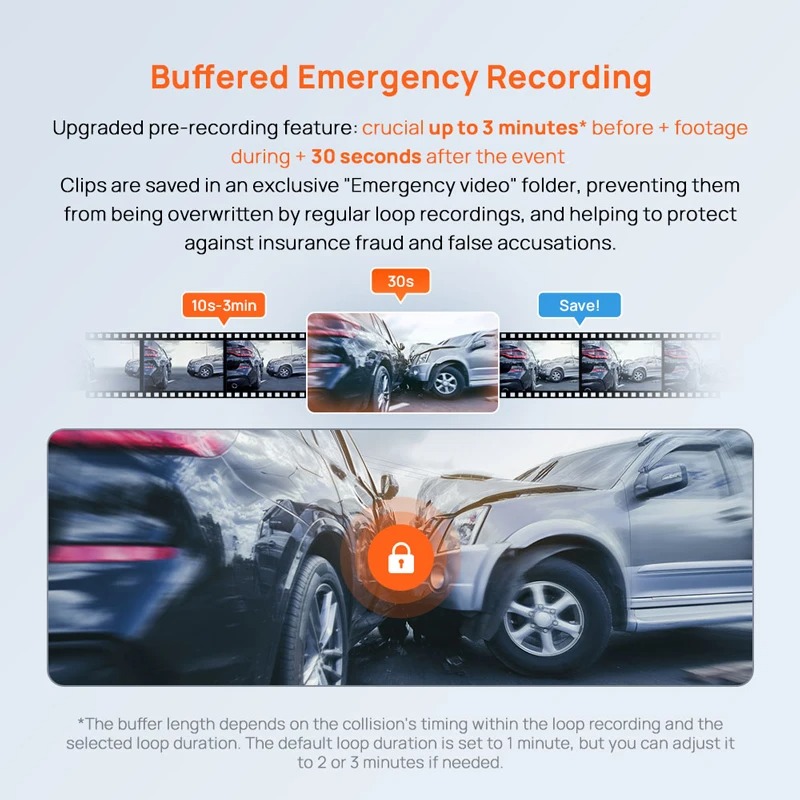 Με τον ενσωματωμένο αισθητήρα G (G-sensor), η κάμερα ενεργοποιείται αυτόματα αν ανιχνεύσει κραδασμό ή σύγκρουση ενώ το όχημα είναι σταθμευμένο (απαιτείται το Hardwire Kit της 70mai).