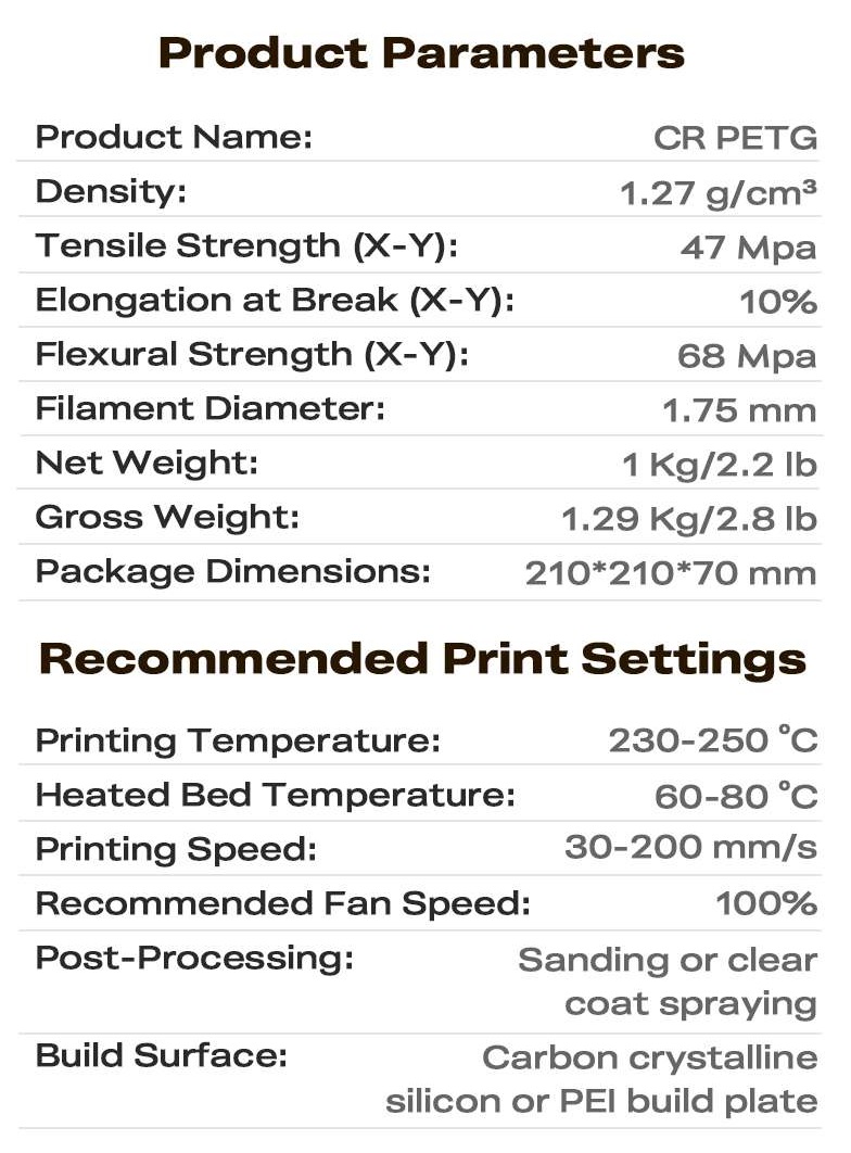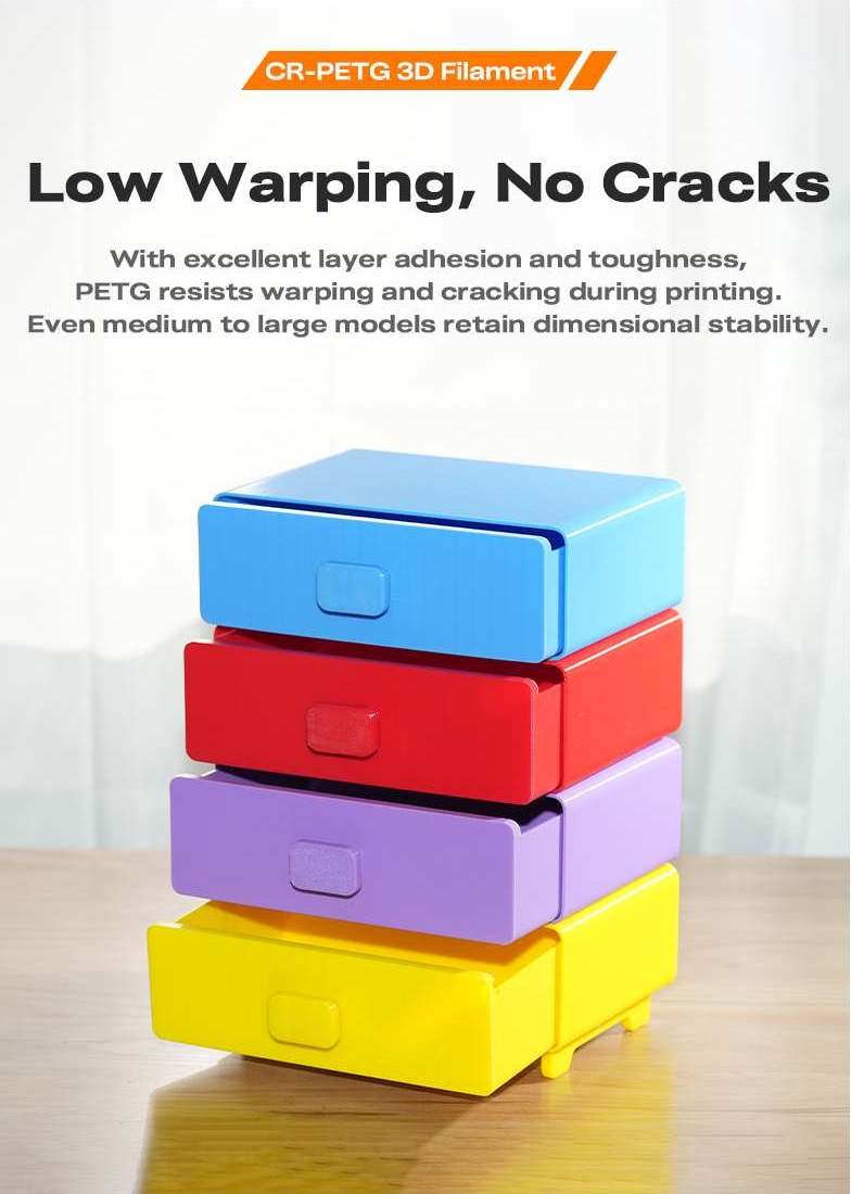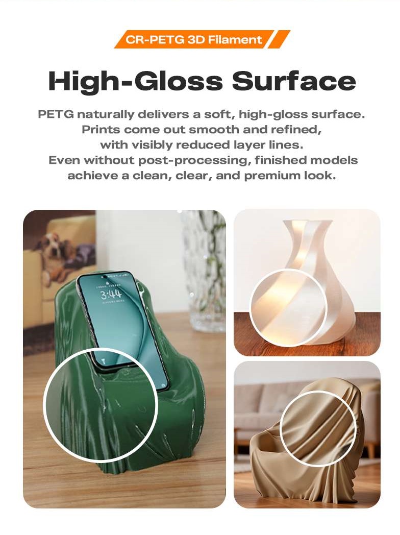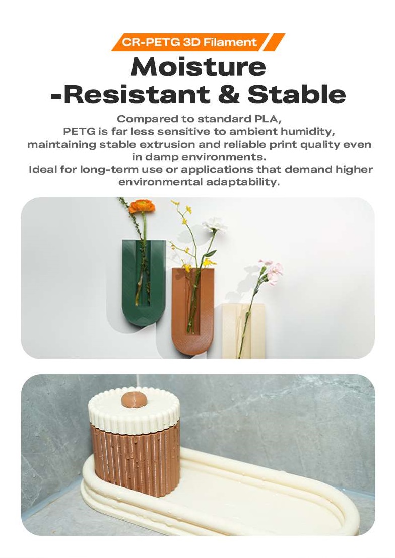 Το PETG έχει εξαιρετική αντοχή στις καιρικές συνθήκες και χημική αντοχή, δεν έχει οσμή και είναι μη τοξικό, φιλικό προς το περιβάλλον.