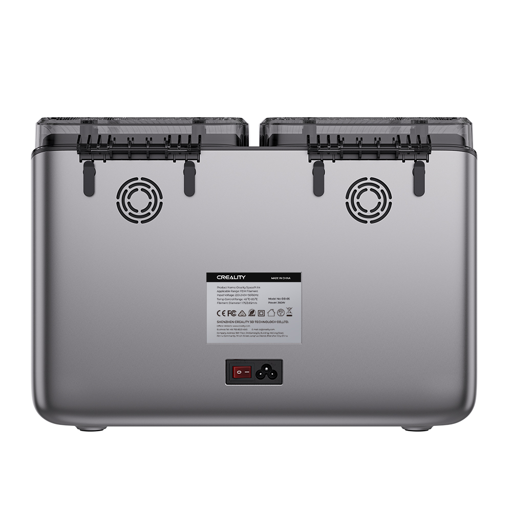 Οι διπλοί θερμαντήρες PTC 200W, σε συνδυασμό με τους μονωμένους θαλάμους, βελτιώνουν σημαντικά την απόδοση της θέρμανσης, επιτρέποντας την επίτευξη θερμοκρασιών έως 850C. Αυτό εξασφαλίζει συνεχή και αποτελεσματική ξήρανση τεχνικών νημάτων όπως PA, PAHT, PC.