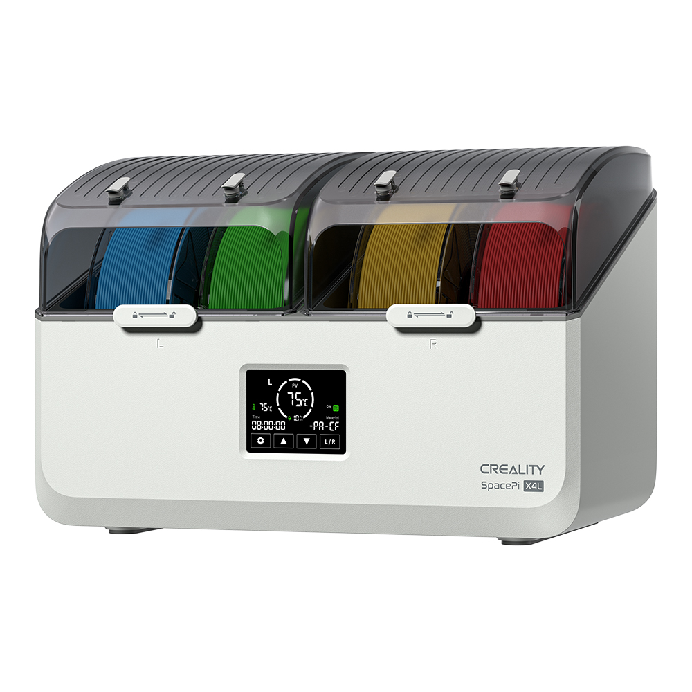 Τα υγρά νήματα μπορούν να προκαλέσουν σχηματισμό νημάτων, φραγμούς, μετατοπίσεις στρωμάτων και κακή πρόσφυση. Το κουτί στεγνώματος SpacePi απομακρύνει γρήγορα την υγρασία, επαναφέρει το νήμα στην βέλτιστη κατάστασή του και εξασφαλίζει ομαλή εξώθηση και σταθερή ποιότητα εκτύπωσης.