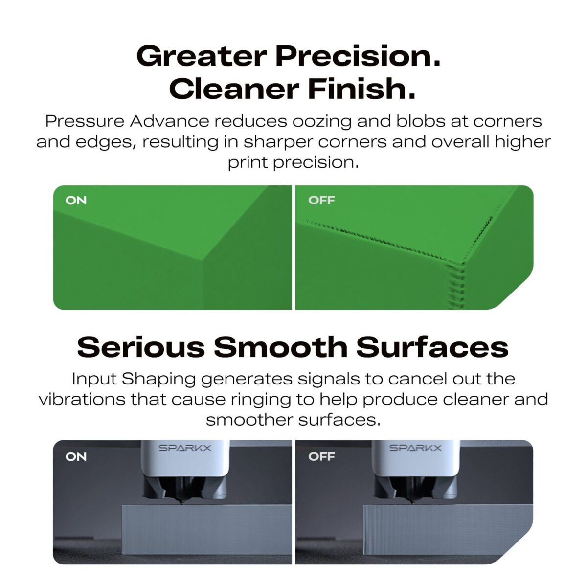 Παράγοντας counteracting signals για την ακύρωση των κραδασμών που προκαλούν το φαινόμενο “ringing” στις εκτυπώσεις, το Input Shaping βοηθά στην παραγωγή καθαρότερων και πιο λείων επιφανειών.