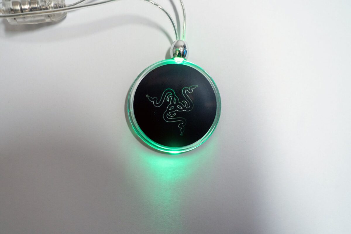 Μενταγιόν με το εμβληματικό σήμα της Razer με λειτουργικό πράσινο LED. Περιλαμβάνει μπαταρίες.